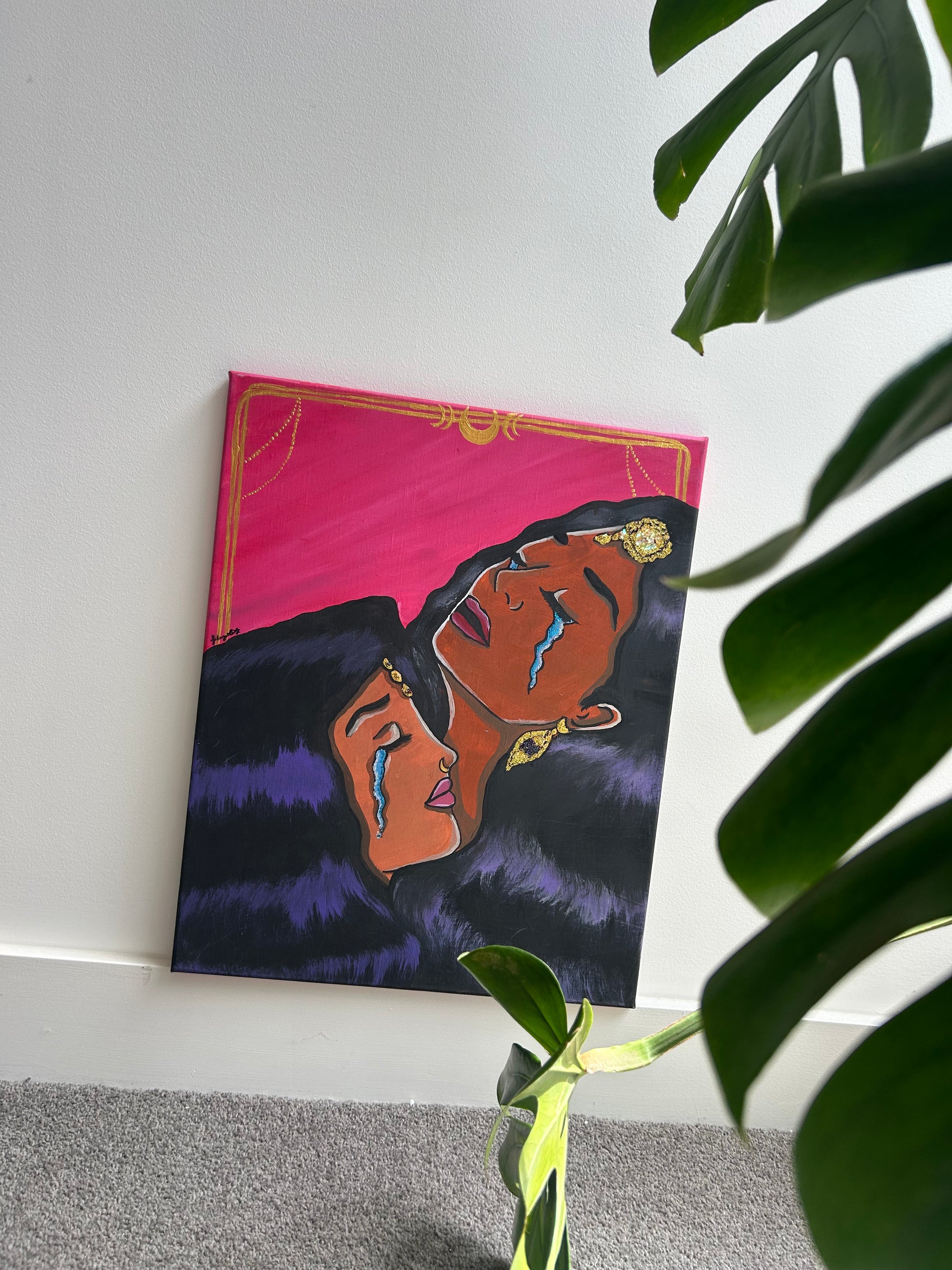Inspired by the nostalgic charm of 1950s pop art with a distinctly Desi twist, this piece explores the delicate balance between despair and comfort - a reminder that beauty can be found even in vulnerability.