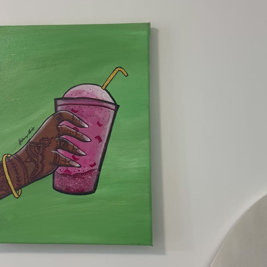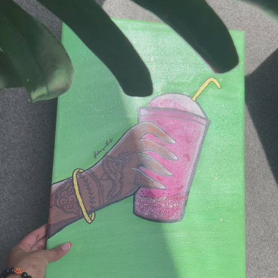 Sweet, indulgent, and a touch of sparkle, “Craving You” is a love letter to the nostalgic joys of growing up South Asian, wrapped in the vibrant hues of acrylic and glitter.
