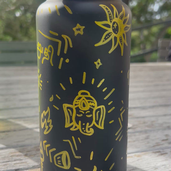 These bottles are hand-drawn and painted - no two are alike. Slight variations in design, brushstroke, or symbol placement are part of what makes them one-of-a-kind. Think of each bottle as a wearable art piece, created just for you.